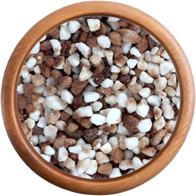 Ezek az apró vanília és karamell ízű cukorgyöngyök kiválóan alkalmasak kávé, tea vagy desszertek ízesítésére. A cukor tökéletesen illeszkedik a darálókba, így kellemes dekorációt varázsol az étkezőasztalon.